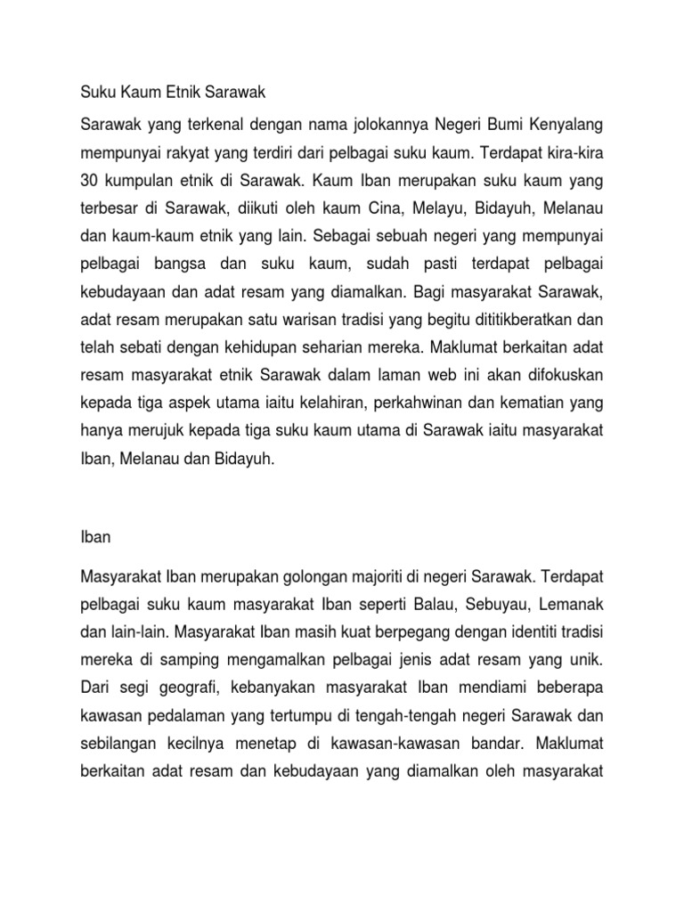 Related : Suku Kaum Di Sarawak - Suku kaum etnik sarawak sarawak yang terkenal dengan nama jolokannya negeri bumi kenyalang mempunyai rakyat yang terdiri dari pelbagai suku kaum..