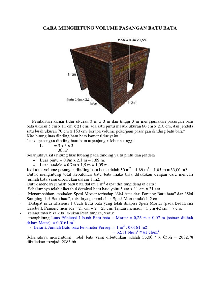 Related : Cara Menghitung Volume Pondasi Batu Bata / Dec 03, 2010 · cara menghitung kebutuhan material dak lantai beton per m2..